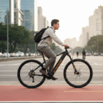 O motor de 250 W oferece 5 velocidades e 0,3 kgfm de torque, podendo chegar a no máximo 25 km/h.