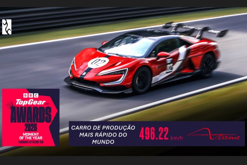 O recorde mundial de velocidade do Yangwang U9 Xtreme foi reconhecido pelo prêmio TopGear.com 2026 como o “Momento do ano”. O esportivo atingiu 496,22 km/h na pista de testes ATP Automotive Testing Papenburg, na Alemanha.